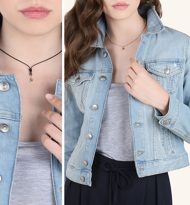 Ciondolo In oro rosa 9 kt, altezza 0,9 cm. Cordino nero incluso.